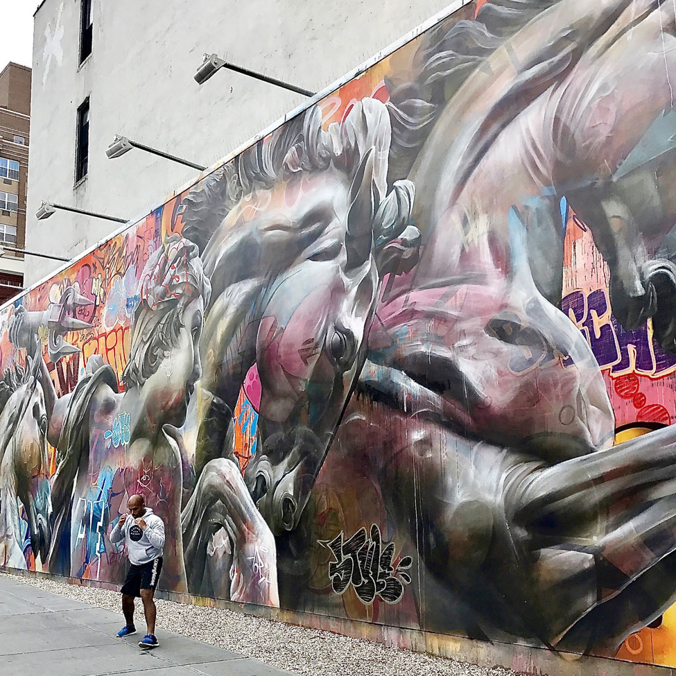 Det fins många graffitimurals i stan, det vill säga väggmålningar, men det här är en av de mest omtalade och lättillgängliga om du bor på Manhattan. New Yorks kända gatukonstnär Keith Haring taggade den här väggen redan i slutet av 70-talet. Då var det obskyra området ett tillhåll för konstnärer, oliktänkande, och annat löst folk. Numera är det ett helt ofarligt område och ägaren till väggen, Goldman Properties, promotar här konstnärer från hela världen i olika omgångar. 2008 påbörjade de med hjälp av galleriet The Hole projektet som är en hyllning till Harings omtalade Bowery Mural från 1982. Ny väggmålning från en ny konstnär kommer upp en till två gånger om året. Om du vill se en av Harings graffitimurals bör du ta dig till utomhuspoolen på Carmine Street i West Village. instagram.com/theholenyc