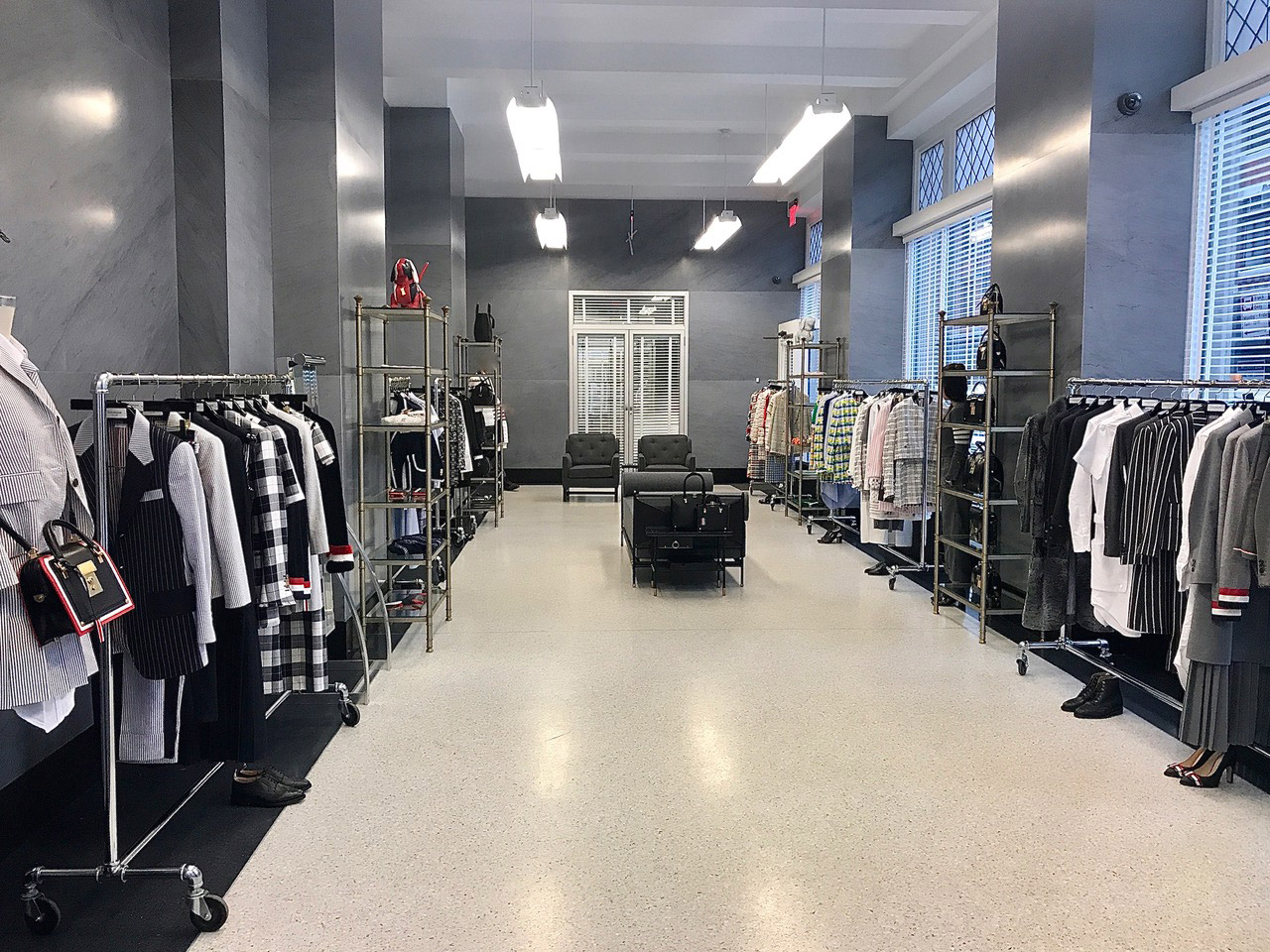 Thom Browne är en amerikansk designer som är mest känd för sina välgjorda kostymer som är designade med en twist. Han utgår från den klassiska kostymen både i herr och dam-kollektionen och slutresultatet har en minimalistisk skoluniformkänsla. För män en kavaj och skjorta med korta smala byxor eller shorts. Kjol eller byxa, vit skjorta och en liten kavaj för damer. Favoritfärgerna är grått, vitt och svart med ett och annat plagg i någon färg. Butiken som ligger i Tribeca, upptar två identiska hörn i byggnaden. Dam och herr-butiken är en spegelbild av varandra och minimalistiskt inredda i mestadels grått. instagram.com/thombrowneny